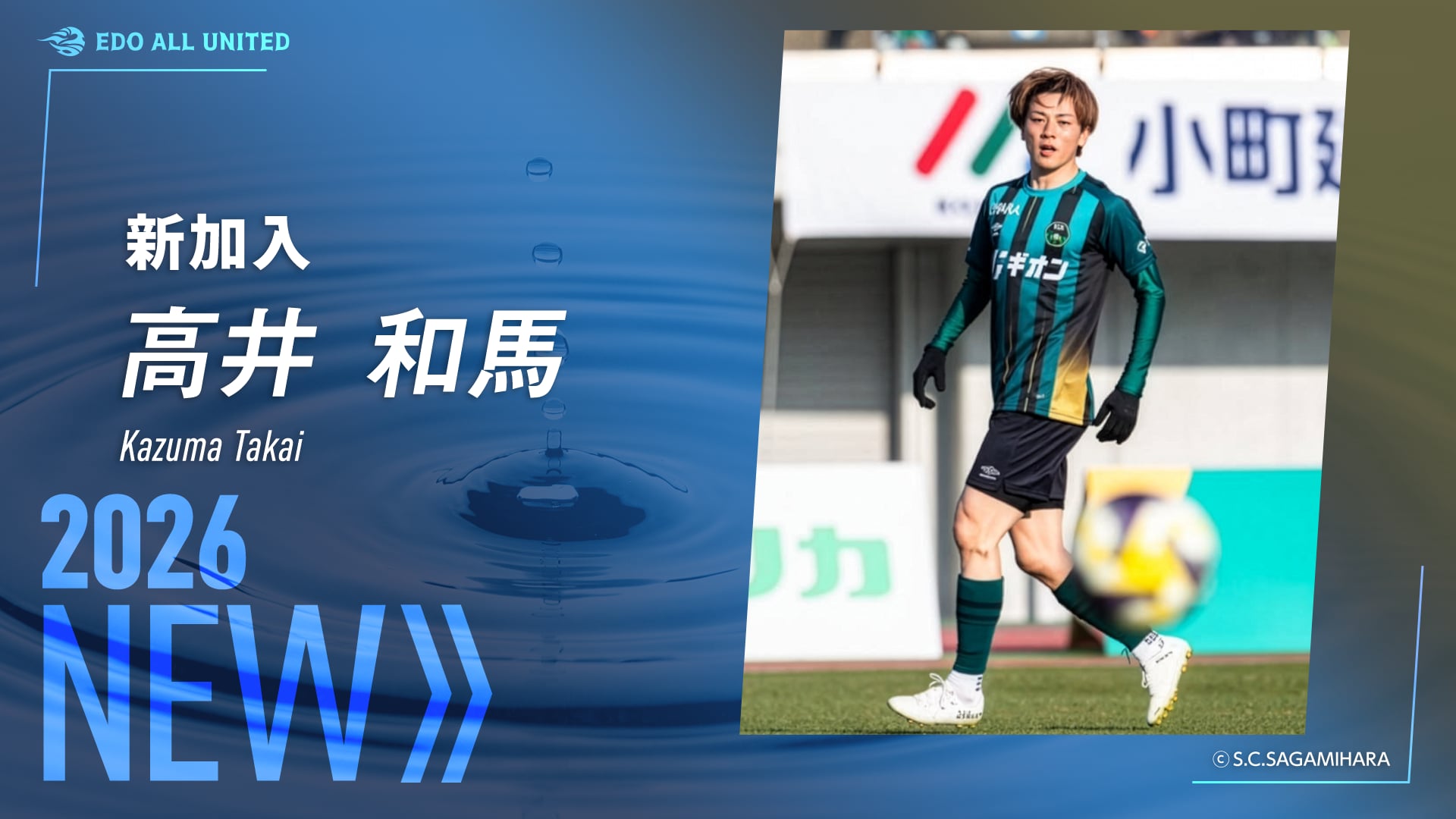 このたび、J3・SC相模原より高井和馬選手がEDO ALL UNITEDに加入することになりましたので、お知らせいたします。