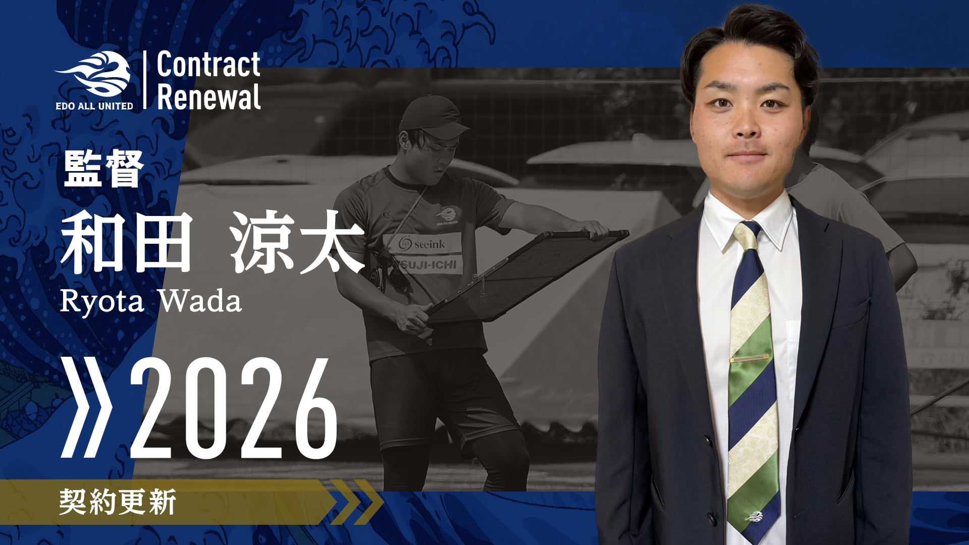 このたび、2025シーズンの監督を務めた和田涼太監督と契約を更新し、関東1部初挑戦となる2026シーズンも、継続して和田監督が指揮を執ることが決定しましたので、お知らせします。
